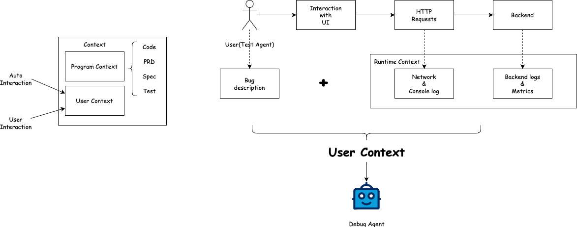 Debug Agent应当由三个重要部分组成:用户上下文、程序上下文和自动化交互方案